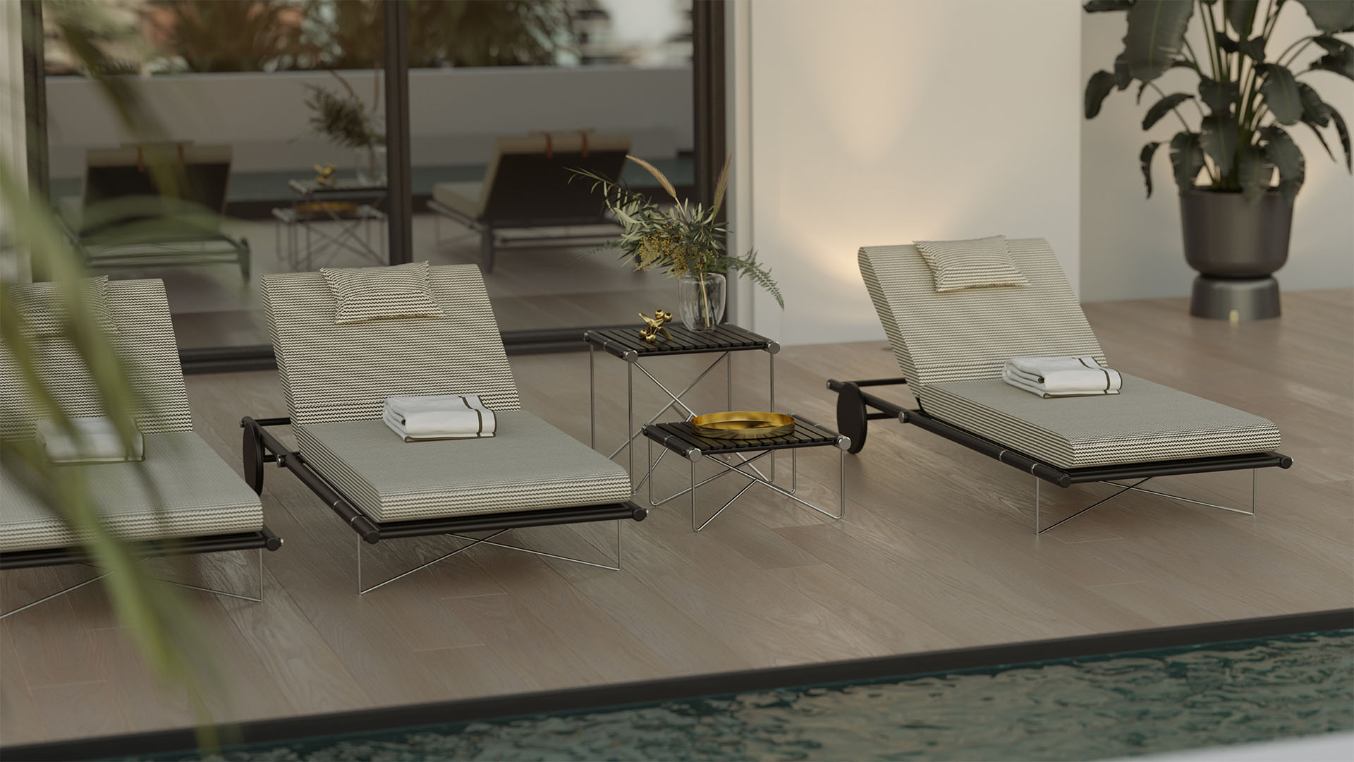 The Noa Collection carries Myface’s contemporary style and meticulous attention to detail for your poolside, lounging, and dining area. A sophisticated yet simple urban fascination made possible with elegant chrome details and lacquered aluminum lines.