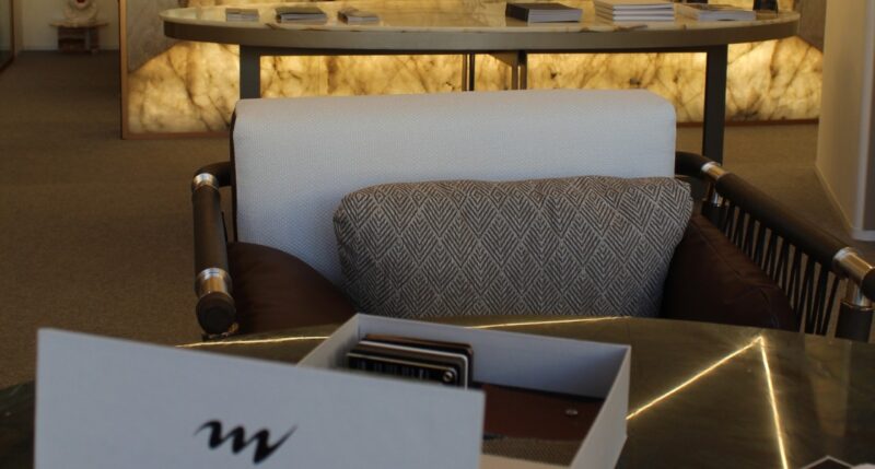 We chose to show our customers pieces that make up two distinct areas, the pool area, where the centerpiece was the Ribbon lounger accompanied by the Dawn side table. And a lounge area, where the Pearl sofa stood out, not only for its unique design but also for the careful choice of finishes and fabrics in more neutral and warm tones.