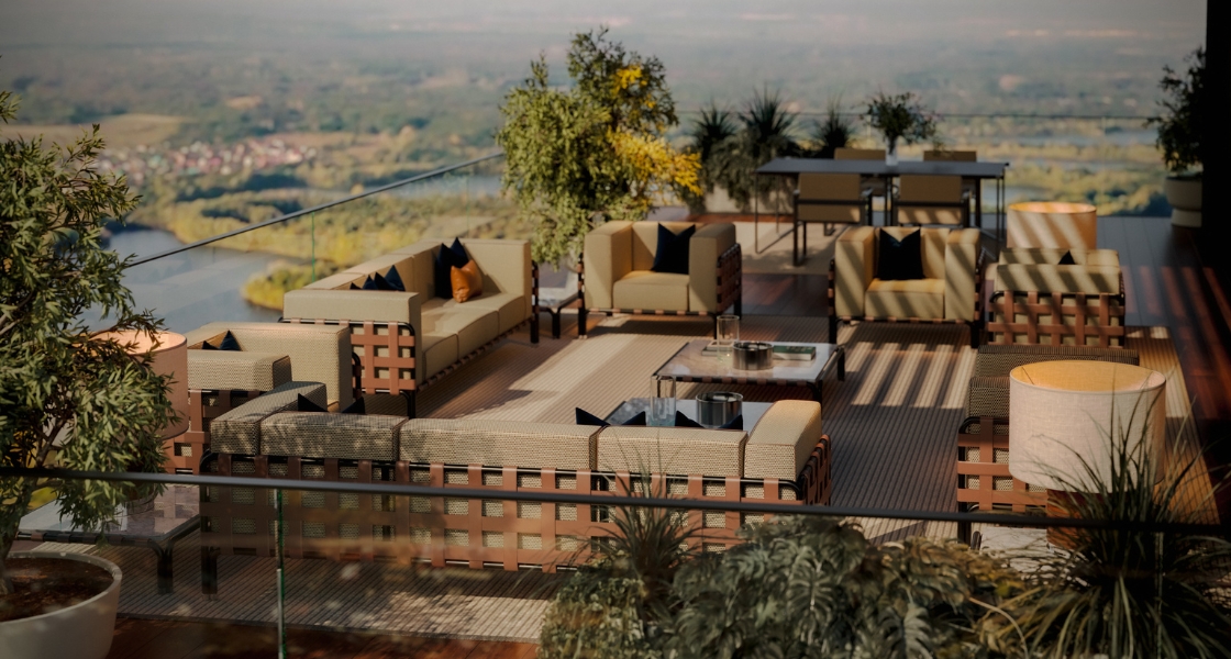 Step atop an elevated apartment balcony, this outdoor composition brings together architectural clarity and sculptural elegance, creating a sanctuary of quiet luxury. Each element has been chosen for its superior material quality and technical precision, designed to foster both connection and contemplation. From the dining area to the lounge zone, every detail is crafted to offer refined beauty and effortless functionality.