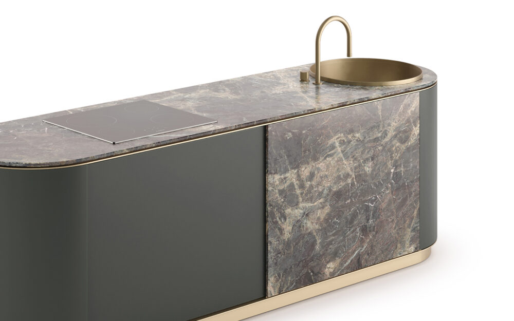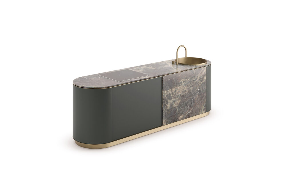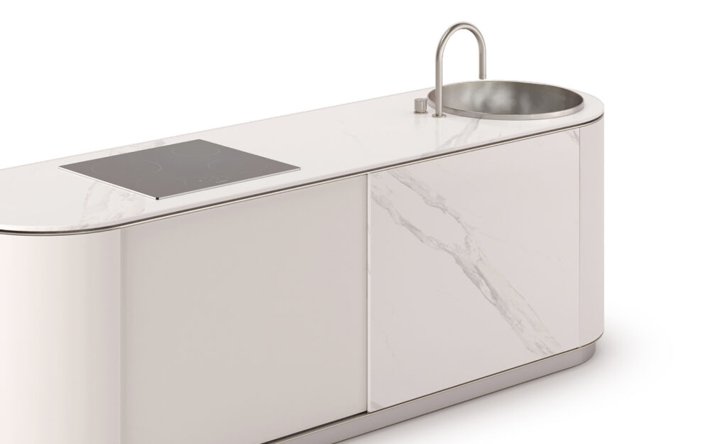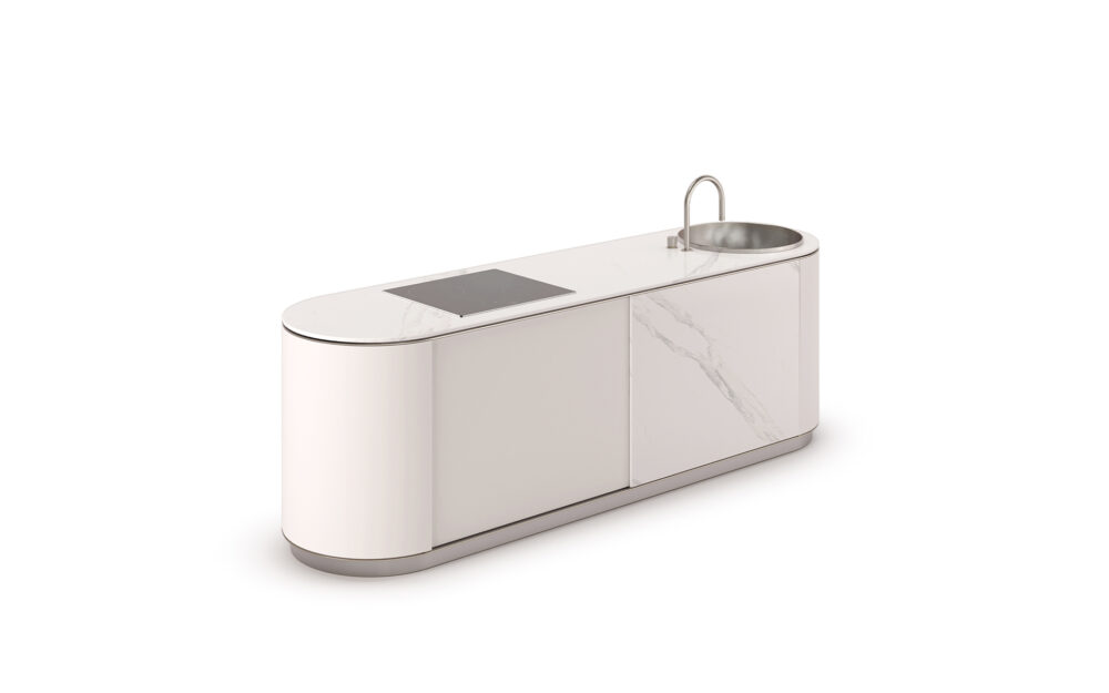 The Moon outdoor kitchen is the perfect setting for memorable gatherings, whether it’s an intimate dinner or a moment with family and friends. Inviting you to explore the art of outdoor cooking, Moon transforms every meal into a celebration. With a unique design that blends modern metallic details and the natural beauty of stones, this kitchen evokes the serenity of moonlight, creating an authentic and unforgettable culinary experience. Simple, sophisticated, and designed for those who appreciate the pleasure of cooking. Available in a variety of finishes and accessories.