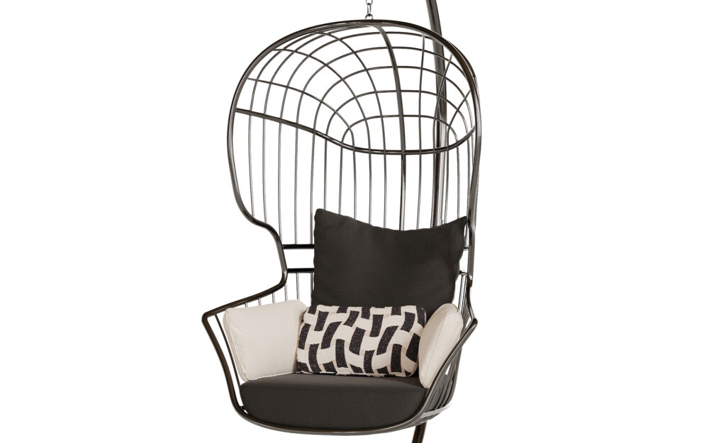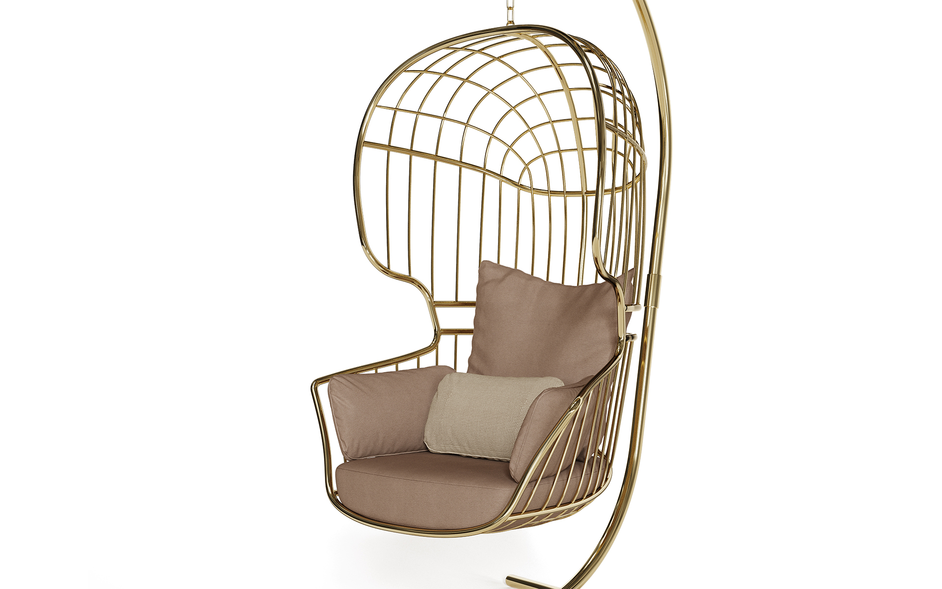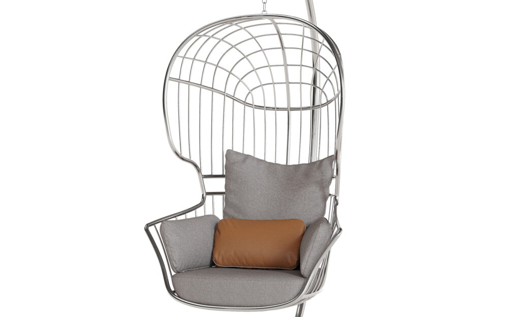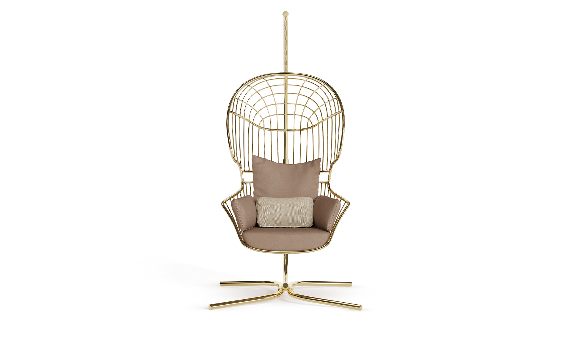 The Nodo Hanging Chair with Base combines durability with elegance, crafted from a coated stainless steel frame for optimal strength and outdoor resistance. Its golden accents bring an air of subtle sophistication, infusing contemporary outdoor settings with a refined, enigmatic elegance that captivates and inspires.