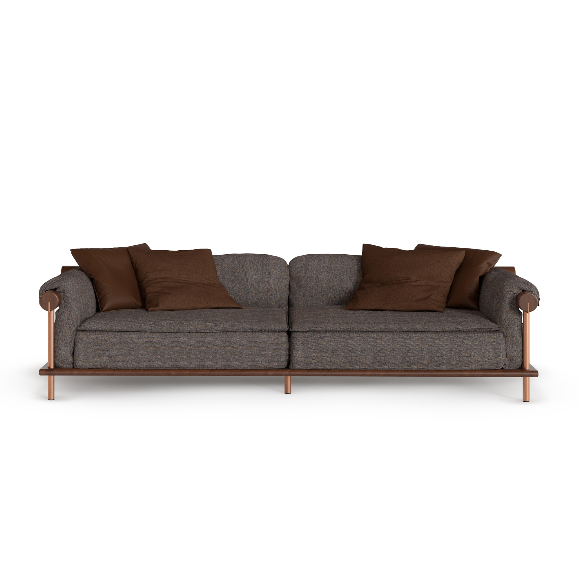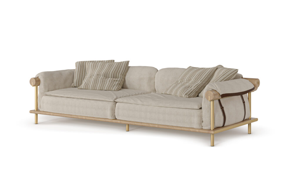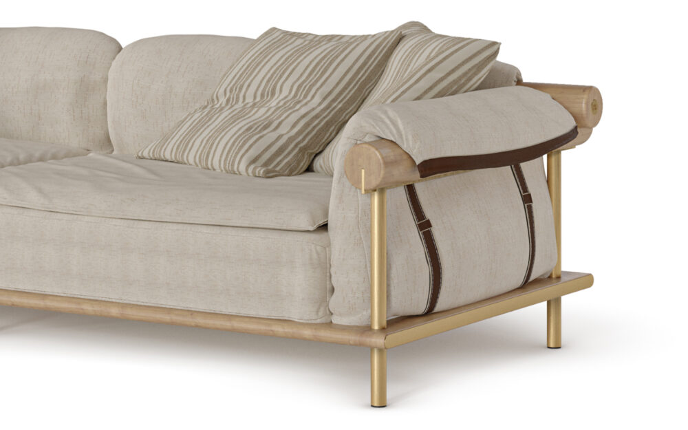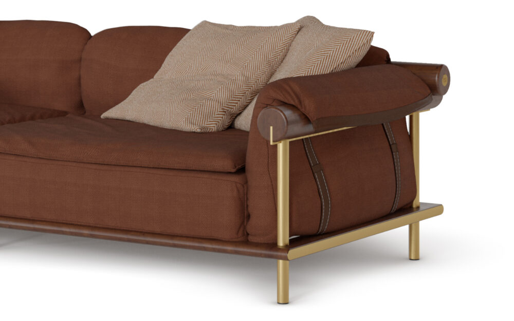 Oka is born from the balance between bold, comfortable forms and enveloping materials, inspired by the Terra Preta universe, where nature, culture, and design coexist. Its solid wood base, combined with subtle metal and leather details, brings a sense of understated elegance, while the multi-layered upholstery, filled with feathers, delivers an exceptional comfort experience. Oka means “home”, and like home, this sofa offers refuge, belonging, and rest.