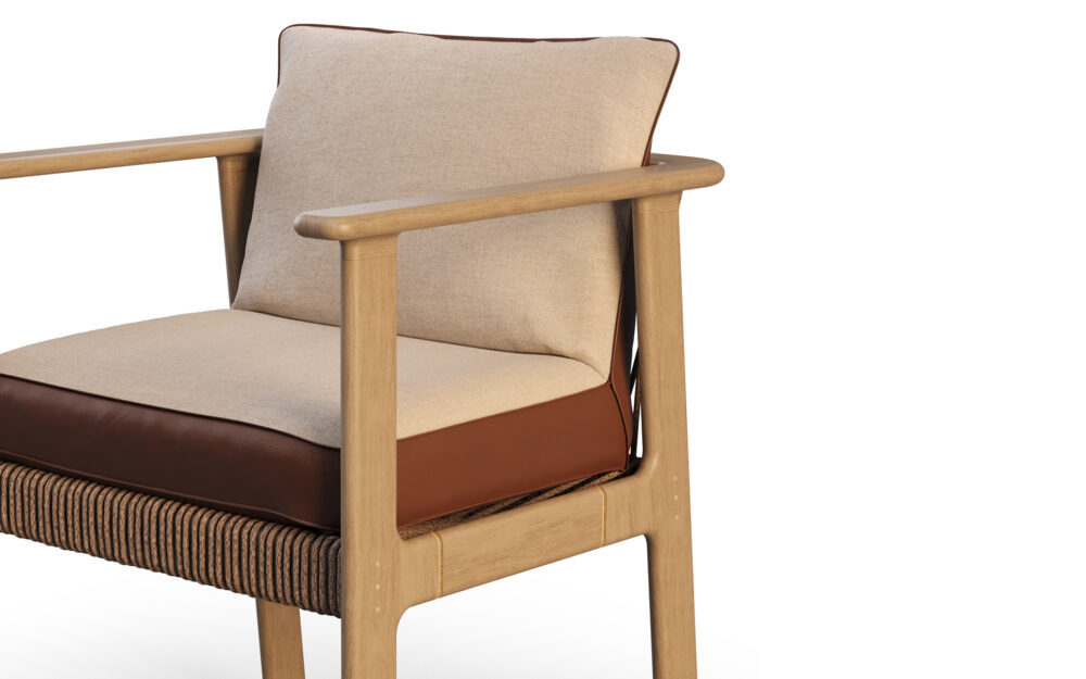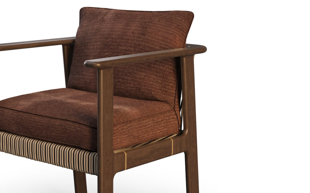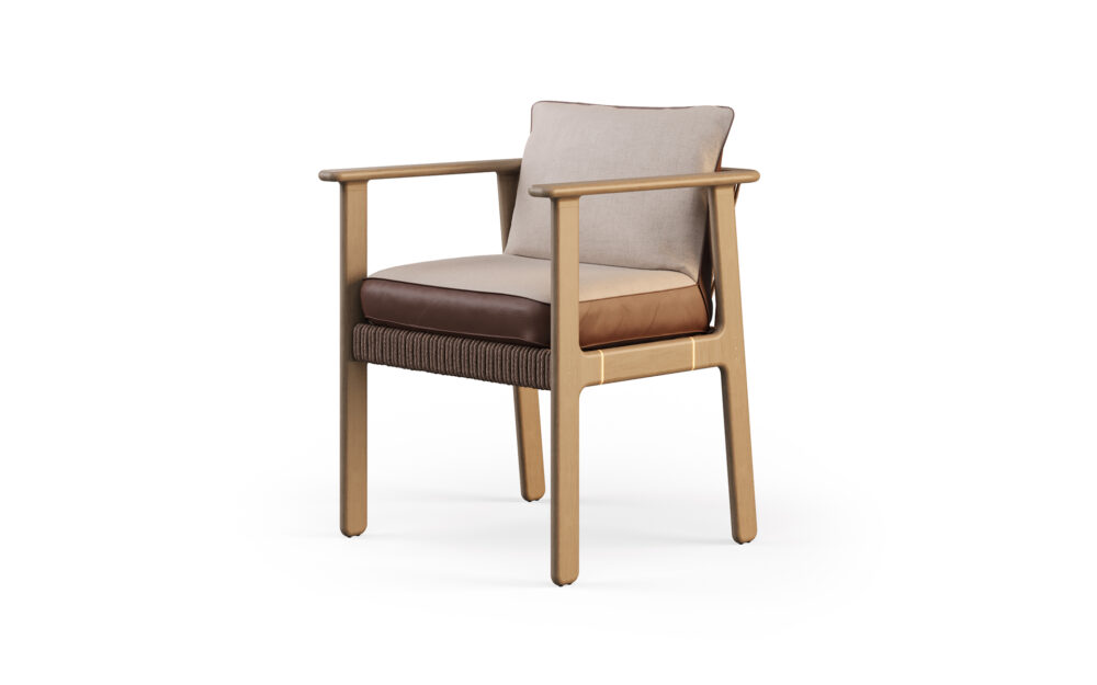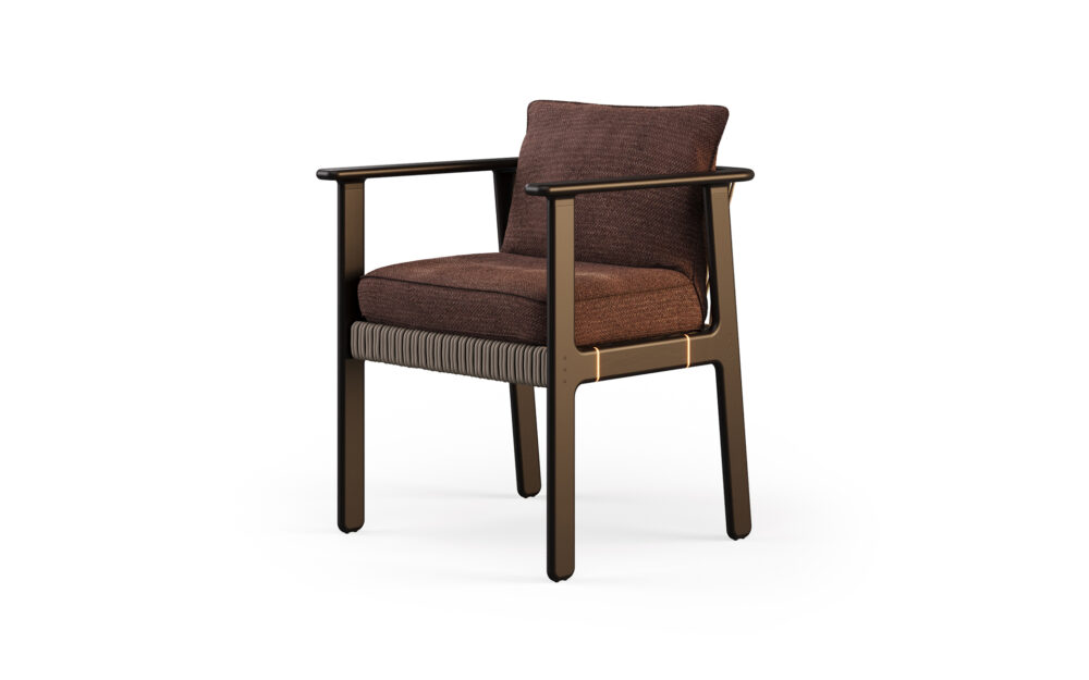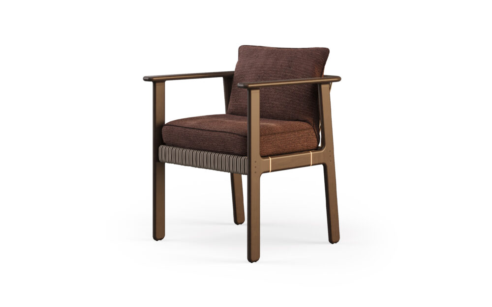 The Ori dining chair is inspired by the idea of origin and is designed with naturally balanced proportions. Its structure combines elegant lines with a sophisticated interplay of materials: the backrest and sides feature perfectly aligned cords, while subtle metallic details accentuate the wooden structure. The result is a chair that conveys comfort and visual harmony, perfectly complementing the Ori dining table.