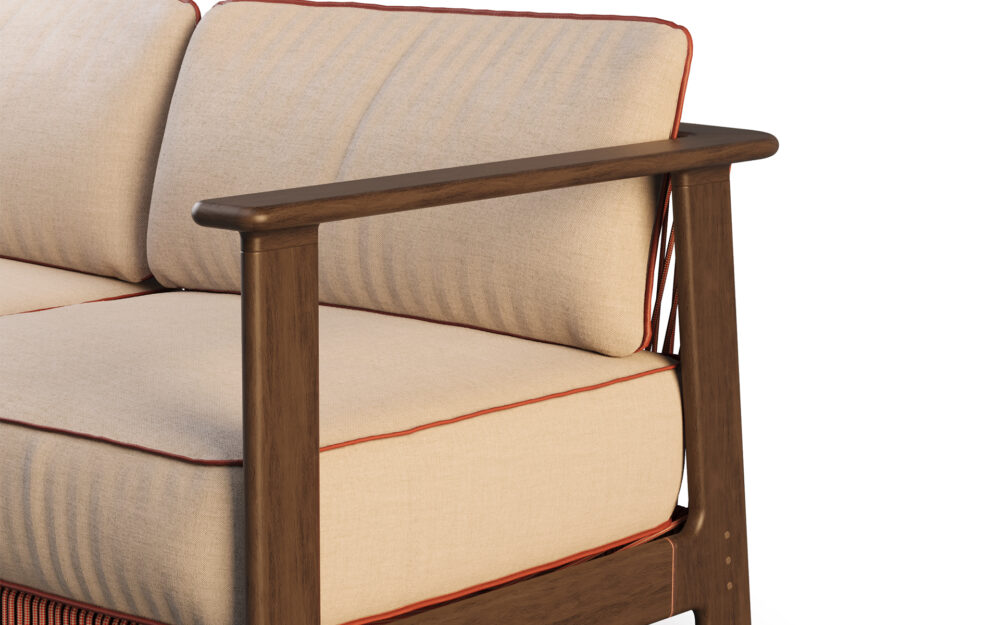 The Ori sofa is inspired by the idea of origin and features naturally balanced proportions, designed for comfort and shared moments. The combination of wood, carefully aligned rope and subtle metal details results in an inviting, comfortable and visually harmonious piece.