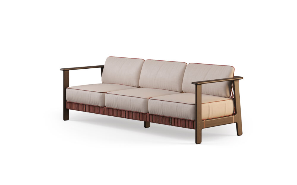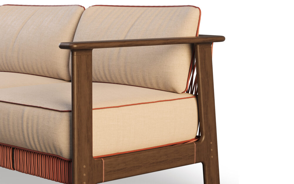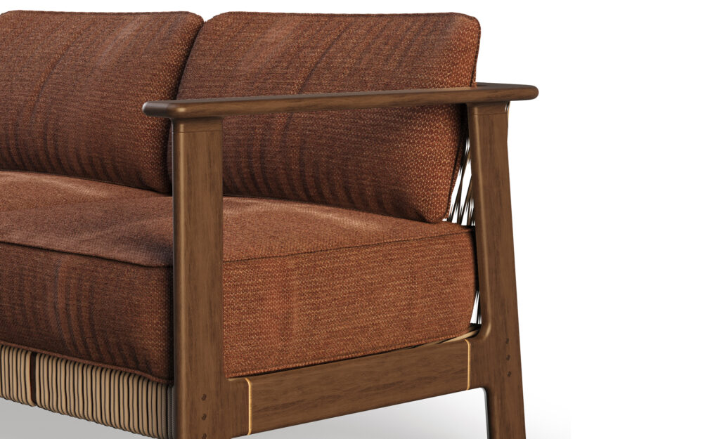 The Ori sofa is inspired by the idea of origin and features naturally balanced proportions, designed for comfort and shared moments. The combination of wood, carefully aligned rope and subtle metal details results in an inviting, comfortable and visually harmonious piece.